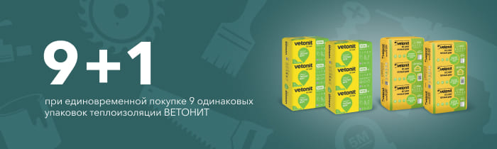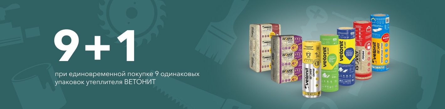 При единовременной покупке 9 одинаковых упаковок утеплителя ВЕТОНИТ, 1 аналогичный товар Вы получаете в подарок!