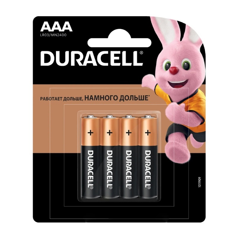 Батарейка алкалиновая Duracell, тип LR03/ААА, 1,5В (4 шт)