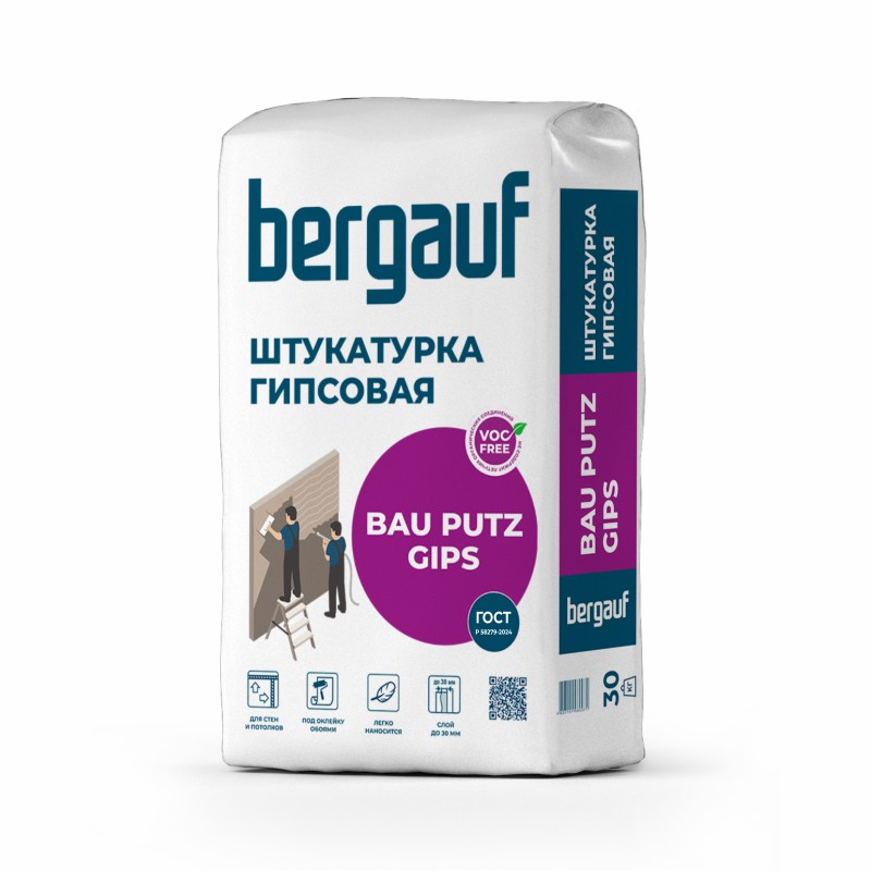 Штукатурка гипсовая трещиностойкая Bergauf Bau Putz Gips, 30 кг