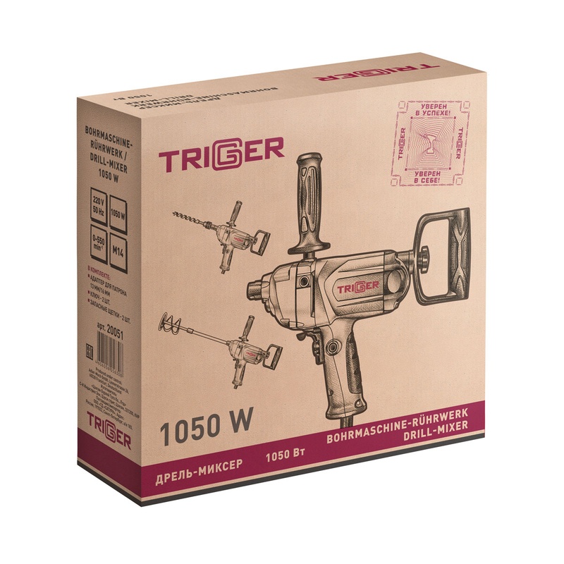 Дрель-миксер сетевой Trigger 20051, 1,05 кВт, 550 об/минуту, патрон 16 мм
