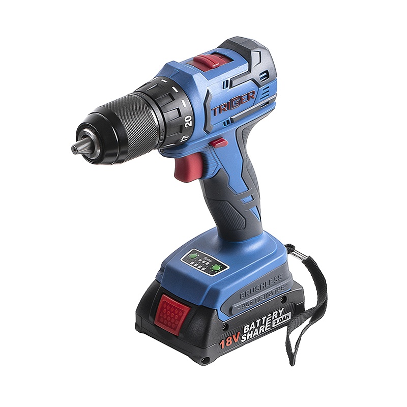 Дрель-шуруповерт Trigger 20111, бесщеточная, 2 аккумулятора Li-ion (2Ач), 18V, 13 мм, 72 Нм, кейс