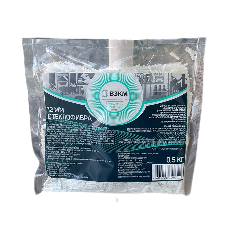 Фибра из стекловолокна длина 12 мм, 0,5 кг