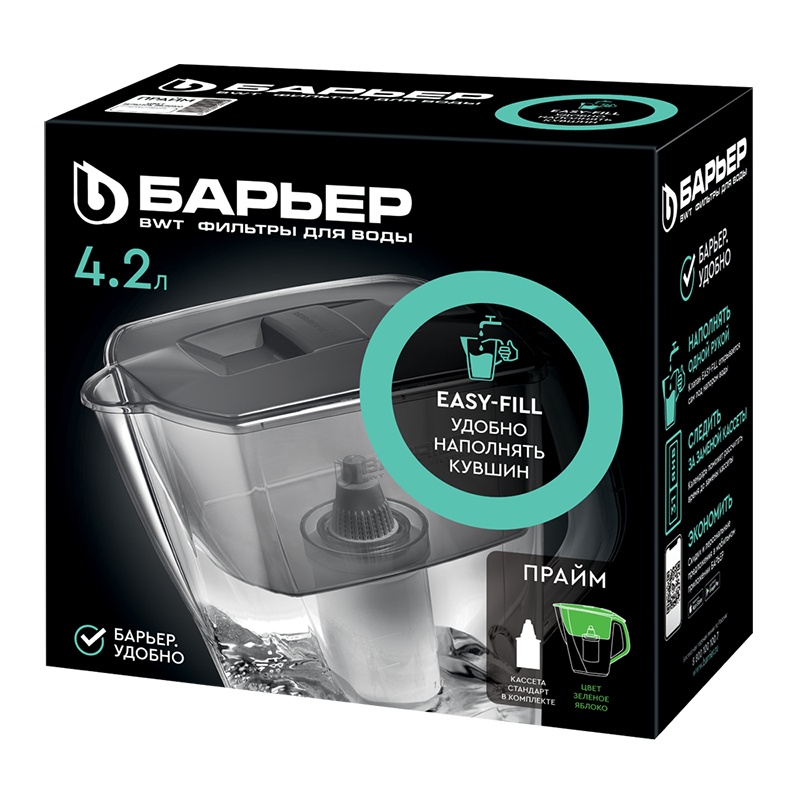 Фильтр-кувшин Барьер Прайм для очистки воды, 4,2 л с кассетой