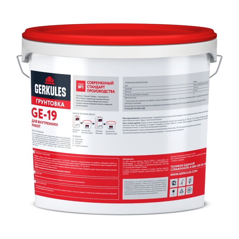 Грунтовка для внутренних работ Gerkules GE-19, 5 кг