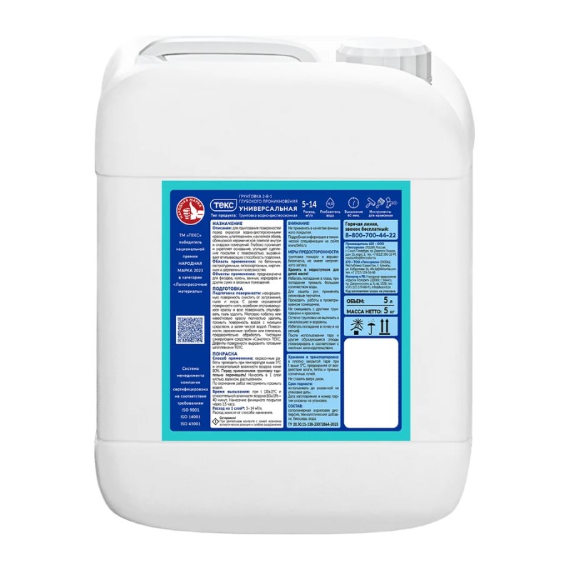 В строительном магазине Сатурн можно купить товар "Грунтовка глубокого проникновения 2в1 Текс Универсал (5 л)" по цене от 853 руб с доставкой за 2 часа по Нефтекамску или оформить самовывоз.
