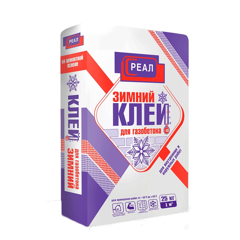 Клей для газобетона Реал зимний, 25 кг