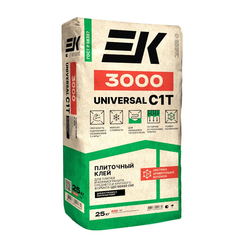 Клей для плитки и керамогранита ЕК 3000 (25 кг)
