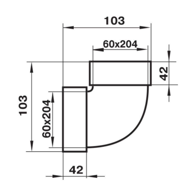 Колено вертикальное Наш Вент 8282, 90 градусов, 204х60 мм