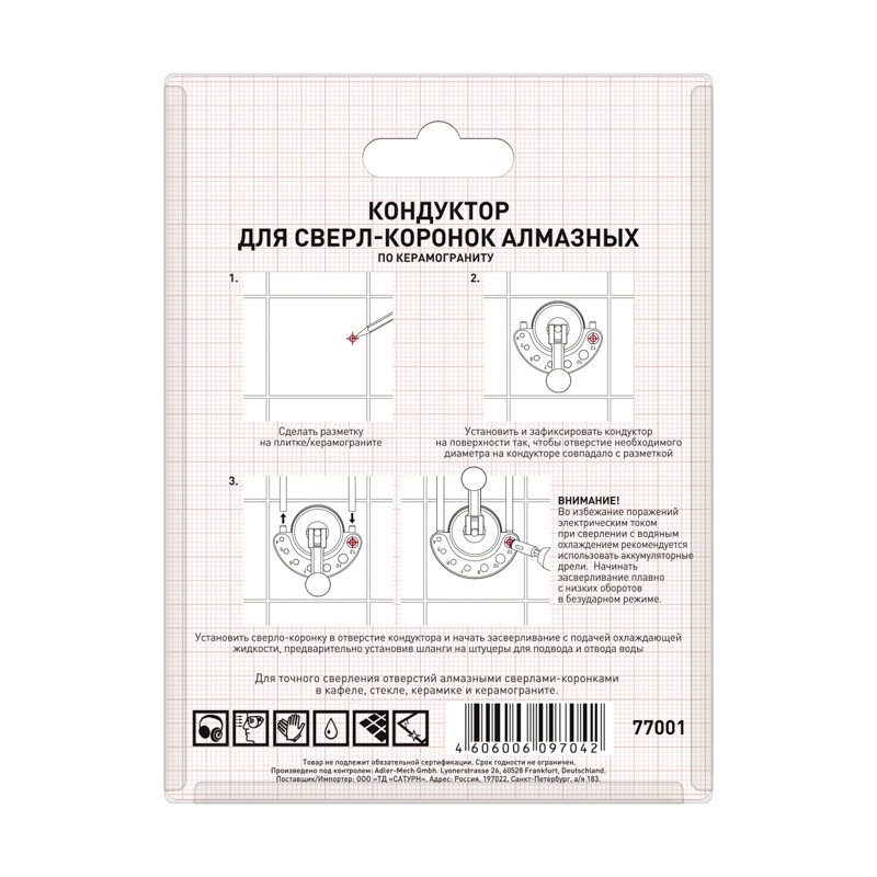 В строительном магазине Сатурн можно купить товар "Кондуктор для корон. алм. по керам. и керамогр. Trigger 77002 14-82мм" по цене от 2250 руб с доставкой за 2 часа по Нефтекамску или оформить самовывоз.