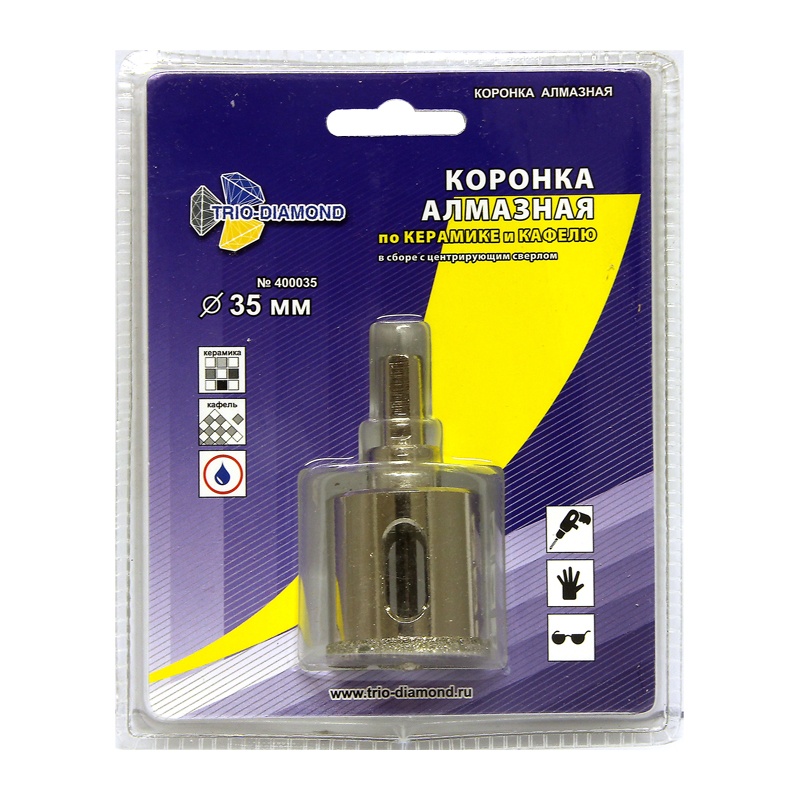 Коронка алмазная по керамике и кафелю 35 мм с центрирующим сверлом