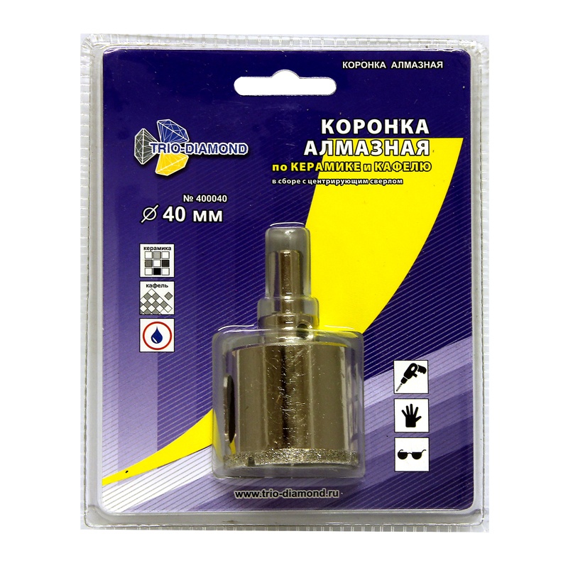 Коронка алмазная по керамике и кафелю 40 мм с центрирующим сверлом