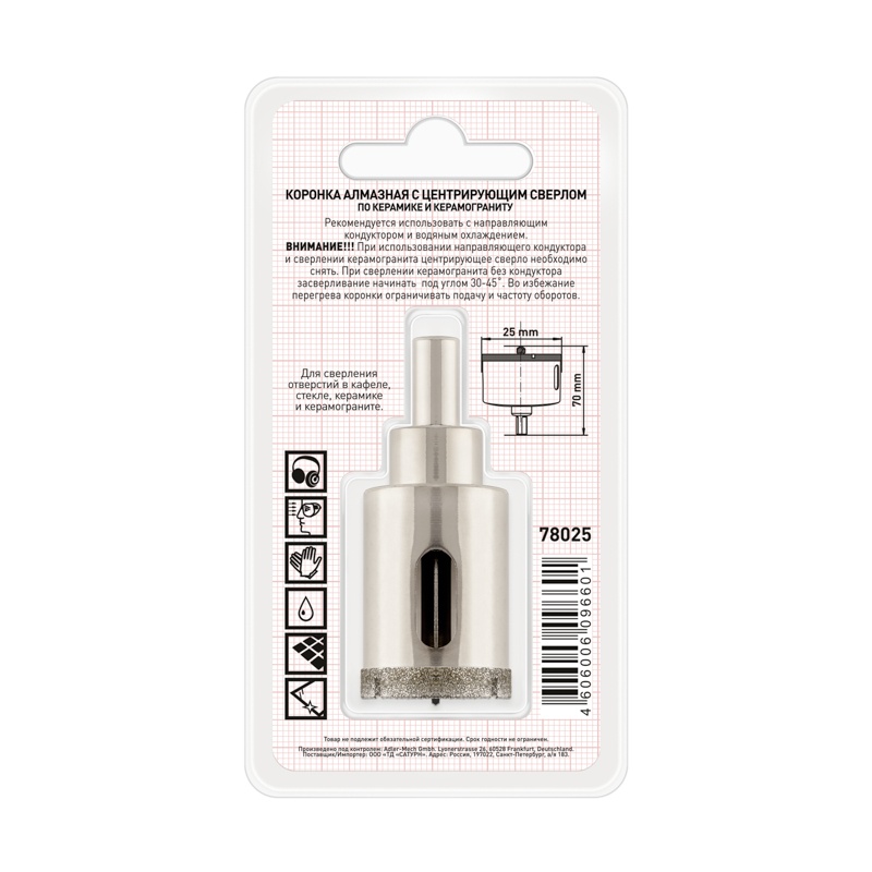 В строительном магазине Сатурн можно купить товар "Коронка алмазная Trigger 78025 25х70мм" по цене от 943 руб с доставкой за 2 часа по Нефтекамску или оформить самовывоз.