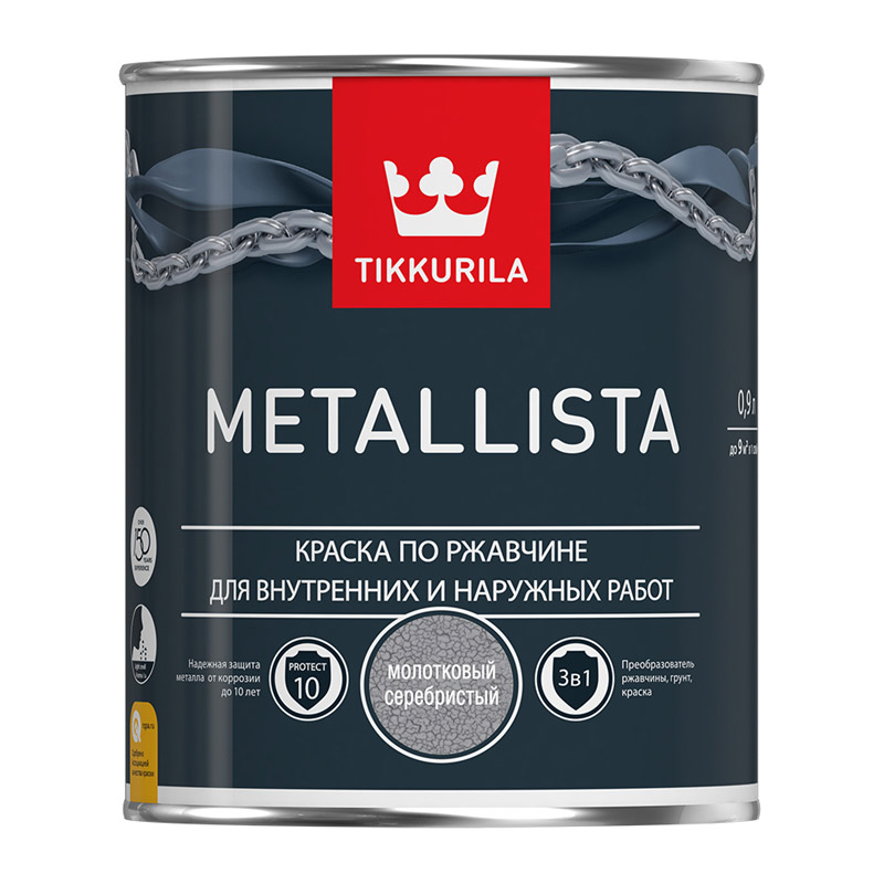 Краска по ржавчине Tikkurila Metallista молотковая серебристая (0,9 л)