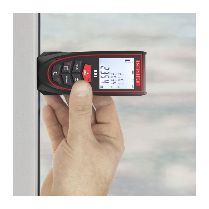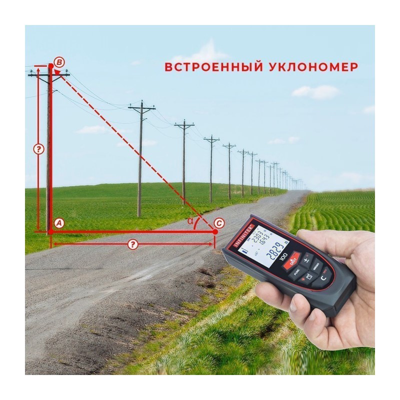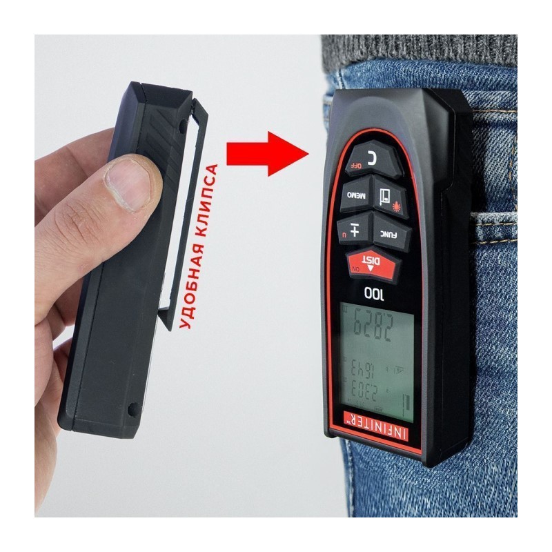 Комплектация: дальномер, клипса для крепления на ремень, батарейки, чехол, руководство по эксплуатации.