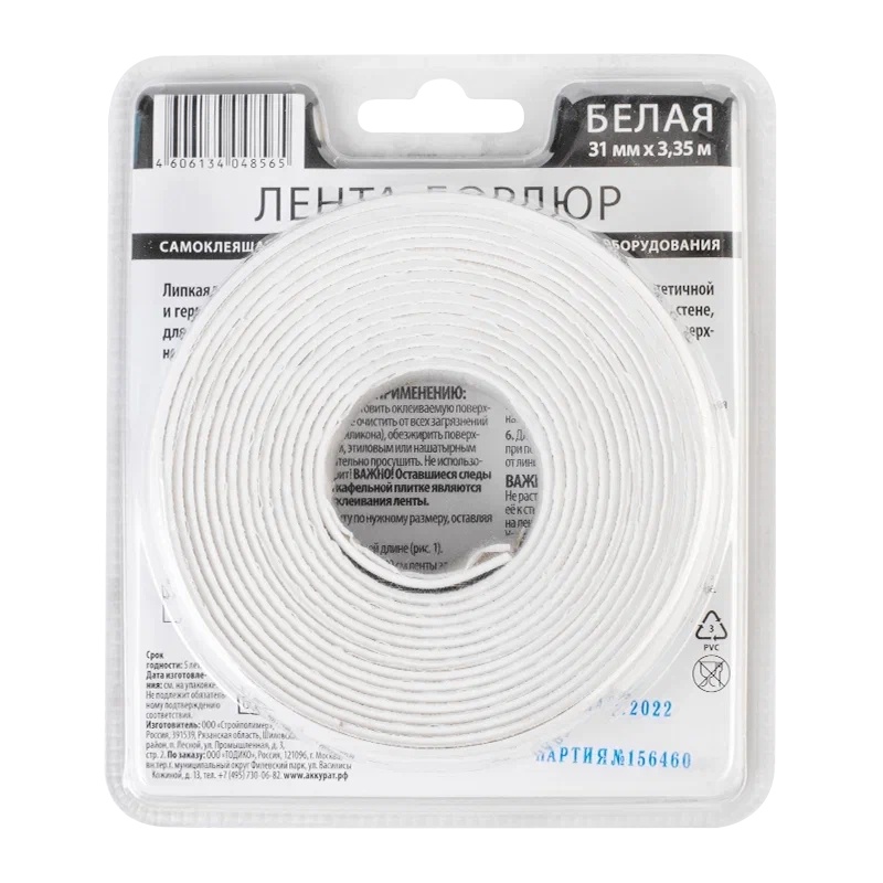 Лента клейкая бордюрная для ванн и раковин, белая, 31 мм х 3,35 м