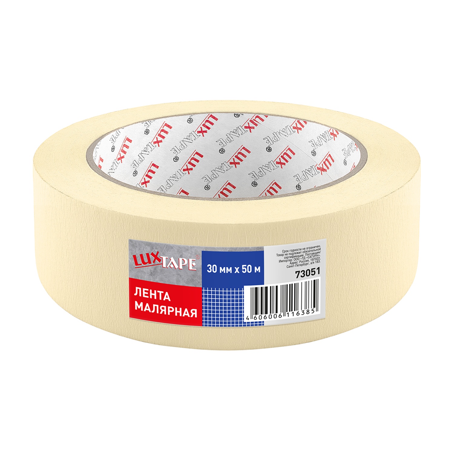 Лента малярная Luxtape 73051, жёлтая, 30 мм х 50 м