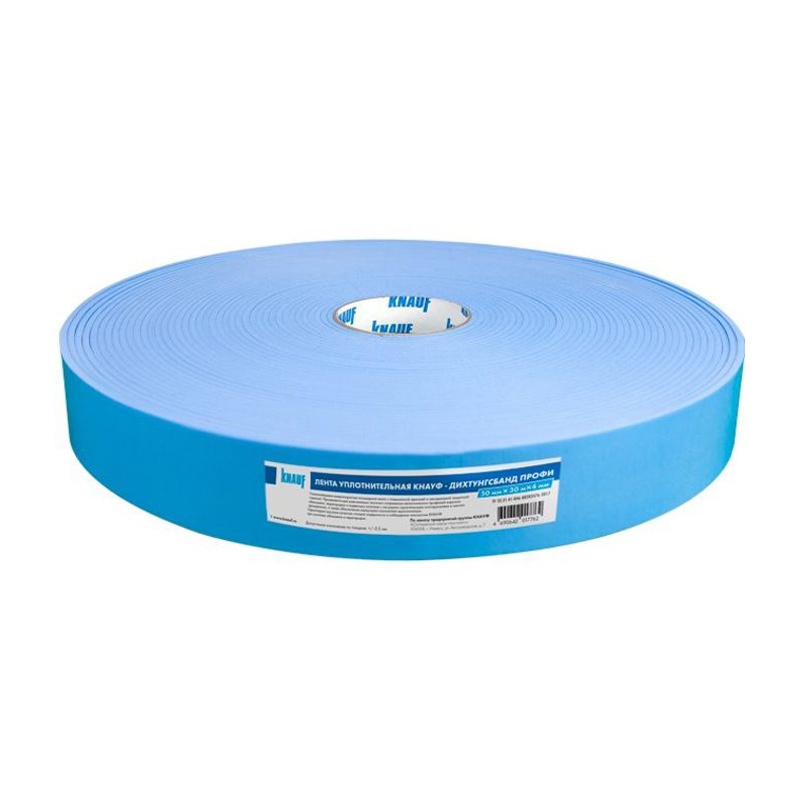 Лента уплотнительная Knauf Дихтунгсбанд Профи — это самоклеящаяся микропористая полимерная лента с высокой адгезией и защитной пленкой, которая не отделяется. Она предназначена для использования в каркасных звукоизоляционных конструкциях, где служит демпфирующим слоем между профилями и обшивкой из листовых материалов. Лента также обеспечивает надежное соединение металлических профилей со строительными конструкциями. Для достижения максимальной звукоизоляции лента наклеивается на полки стоечных профилей (ПС) и стенки потолочных профилей (ПП).