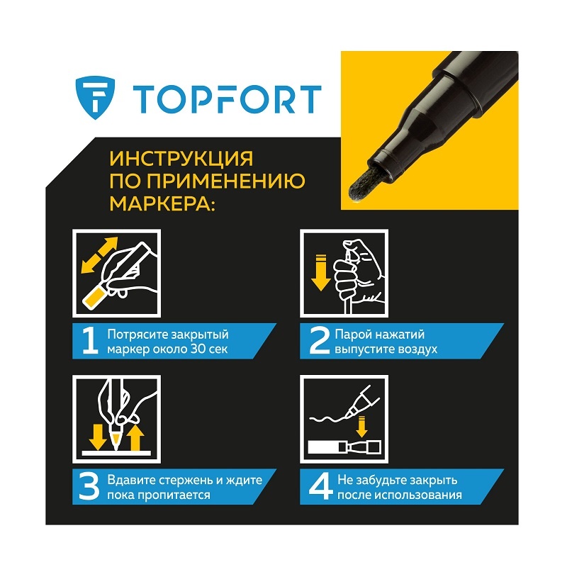 - Перед использованием интенсивно встряхните маркер с закрытым колпачком.