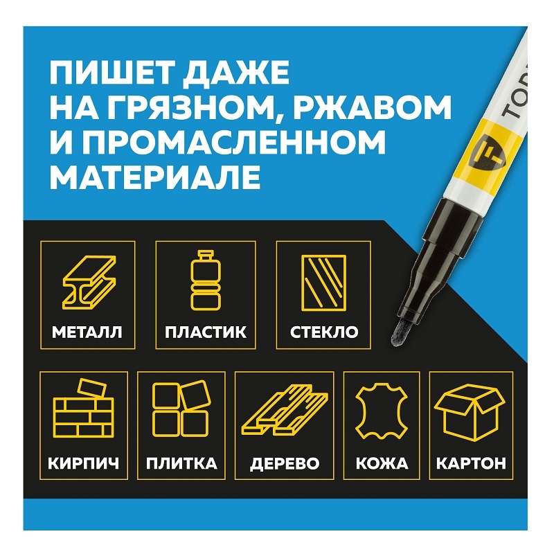 В строительном магазине Сатурн можно купить товар "Маркер лаковый Topfort Paint черный 2 мм" по цене от 152 руб с доставкой за 2 часа по Нефтекамску или оформить самовывоз.