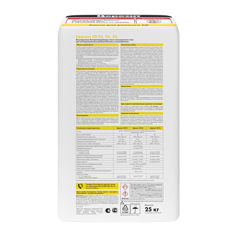 Церезит CD25 — безусадочная тиксотропная ремонтная смесь для бетона (5–50 мм). Предназначена для конструкционного ремонта бетонных и железобетонных конструкций слоем 5–50 мм за одно нанесение.