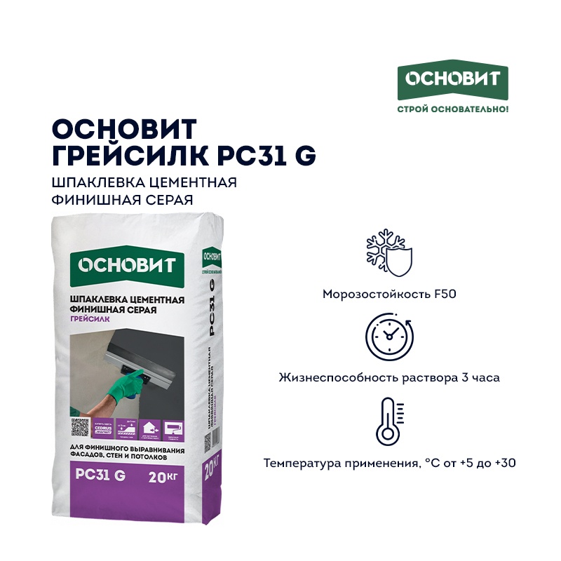Шпаклевка цементная финишная Основит Грейсилк PC31 G, 20 кг