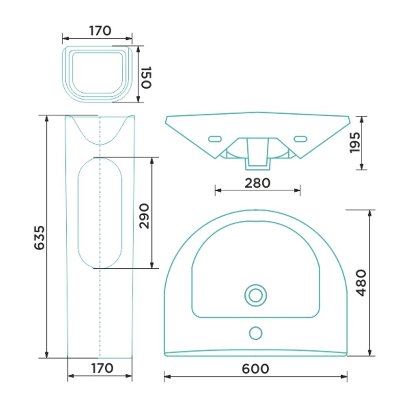 Пьедестал ВКЗ Gesso W101, 170х150х635 мм для умывальника w101
