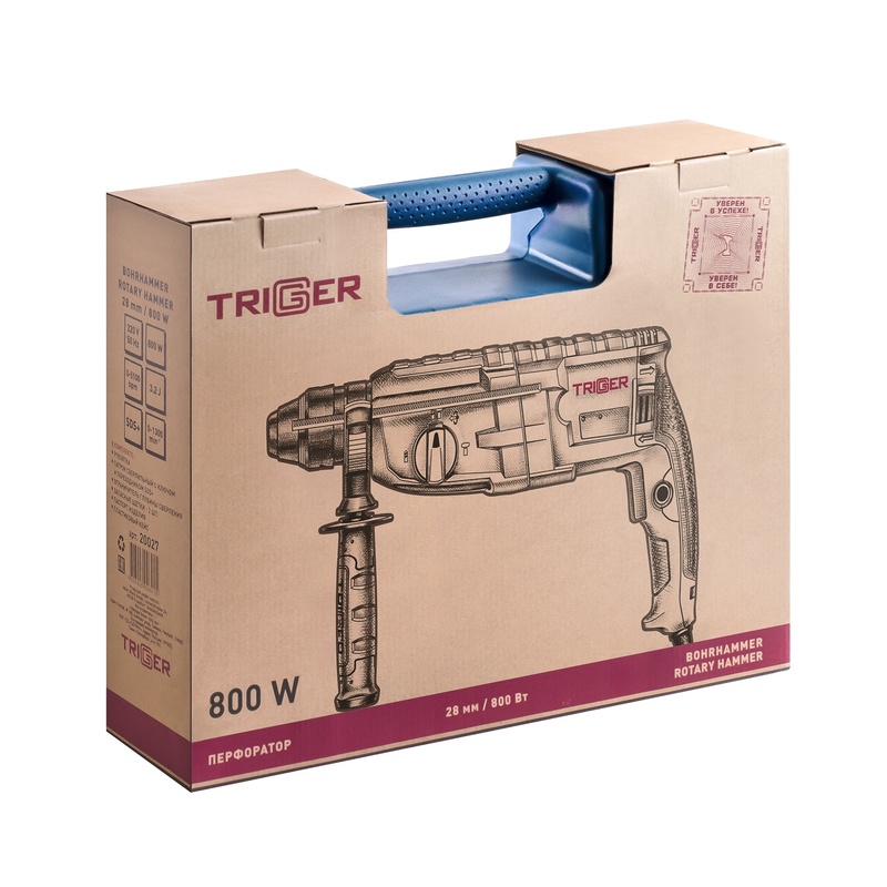 Перфоратор сетевой Trigger 20027, SDS-plus 28 мм 800 Вт 3 режима 3,2 Дж, L кабеля=4 м,кейс в Нефтекамске