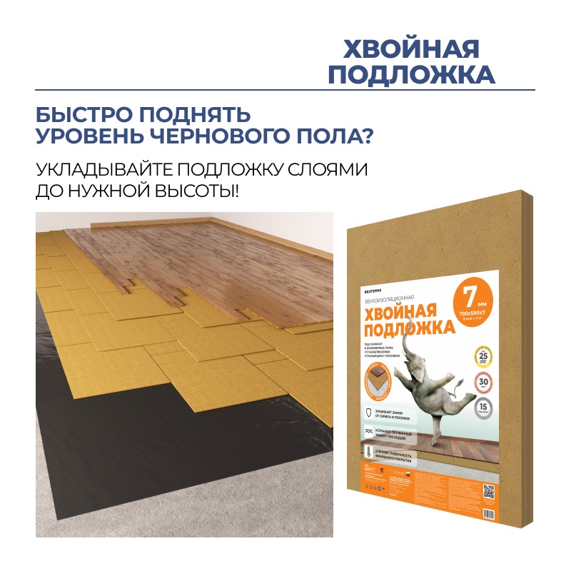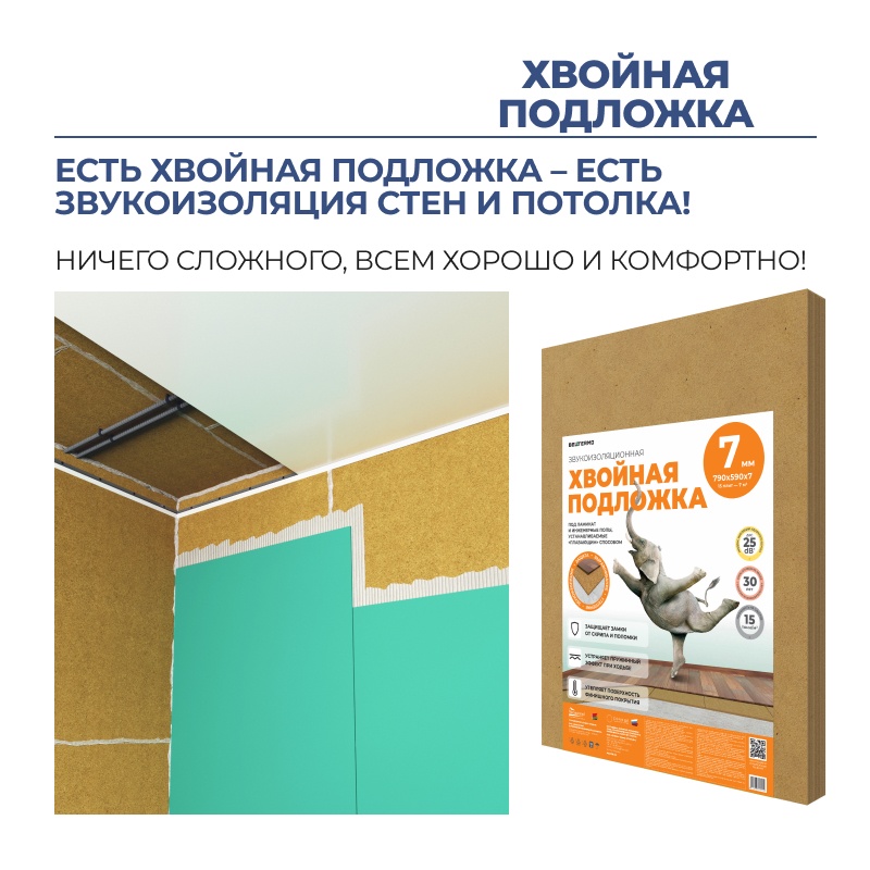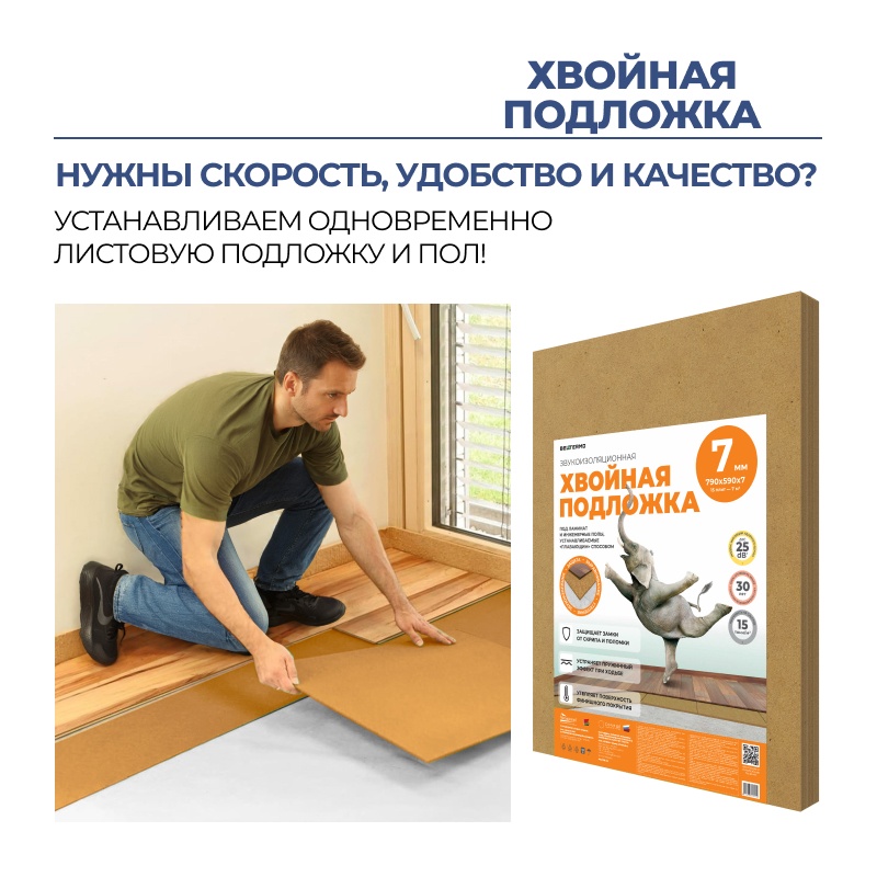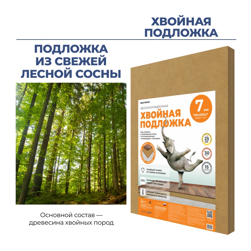 Подложка хвойная Beltermo790х590х7 мм (уп.15 шт) (7 м2)