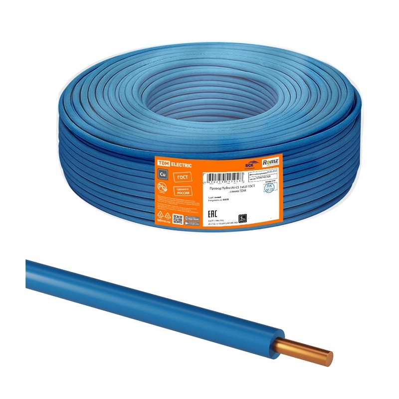 Провод ПуВнг-LS (ПВ-1) 1х6мм2, синий (1 п.м.) ГОСТ 31947-2012