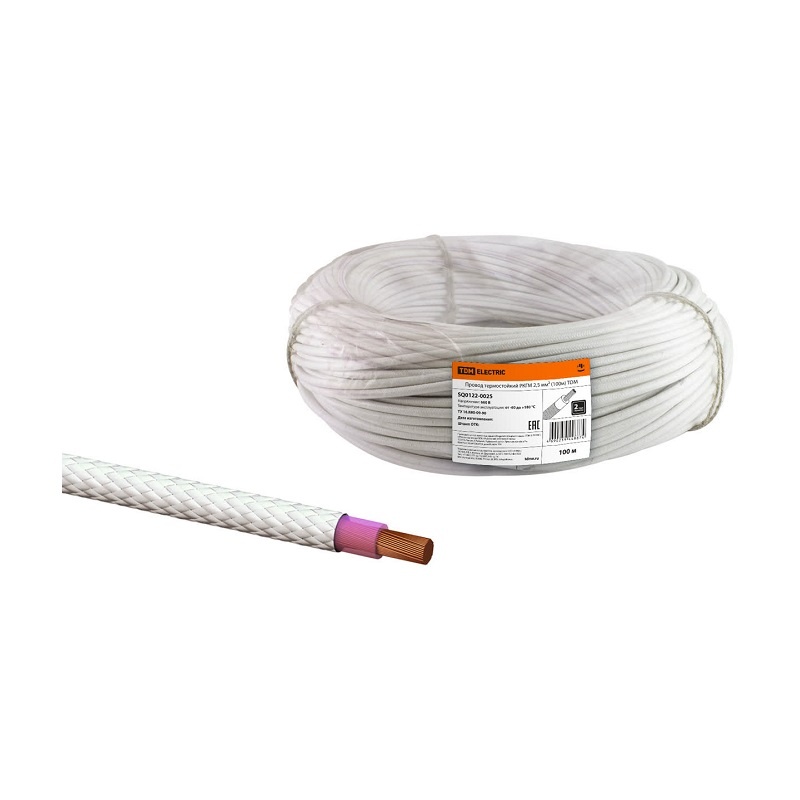 Провод РКГМ 1х2,5мм2, термостойкий, белый (бухта-100 п.м.)
