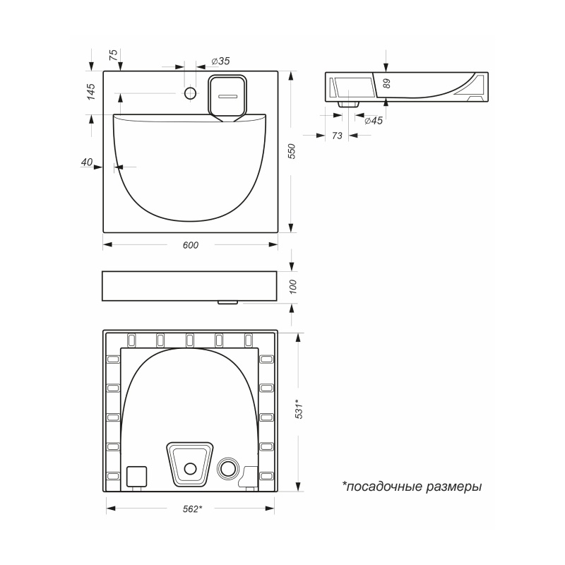 Раковина Sanita Luxe Galaxy 60, 600х550х100 мм