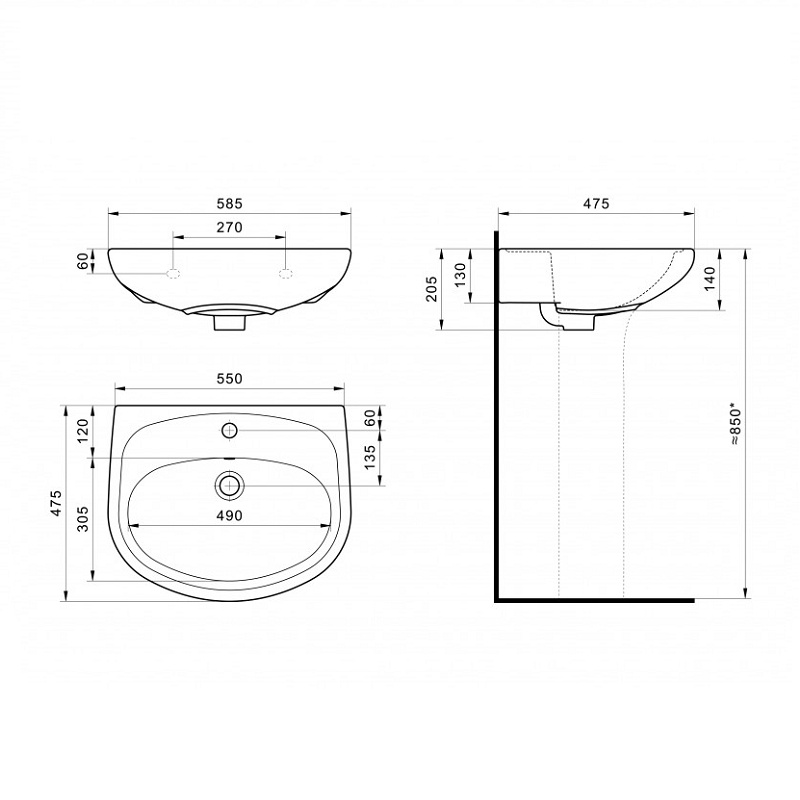 Раковина Santek Анимо 60, 585х475х205 мм