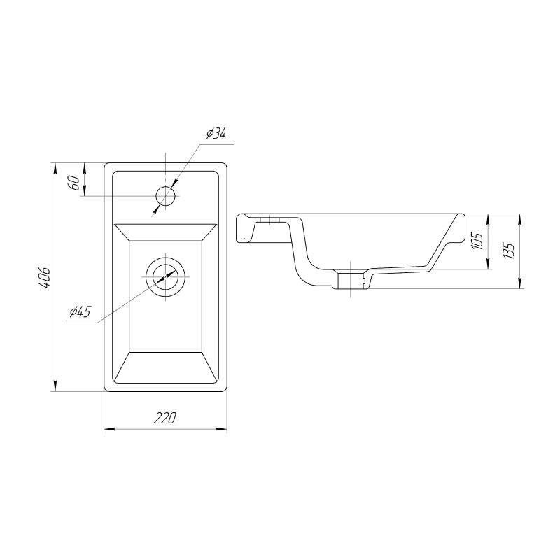 Раковина Универсал Енисей 40, 406х220х135 мм
