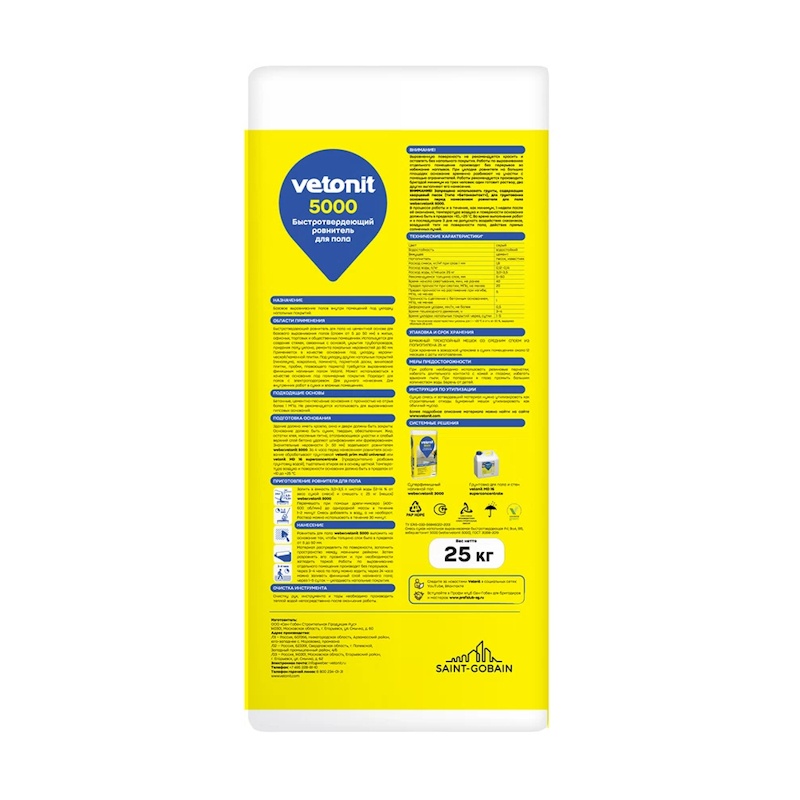 Ровнитель для пола Vetonit 5000, 25 кг