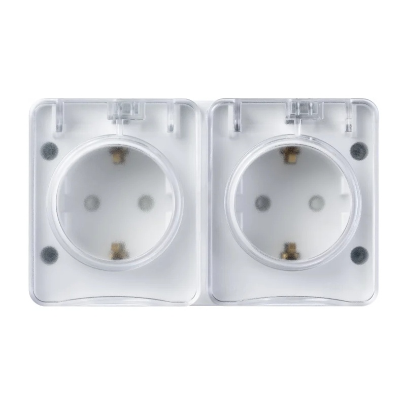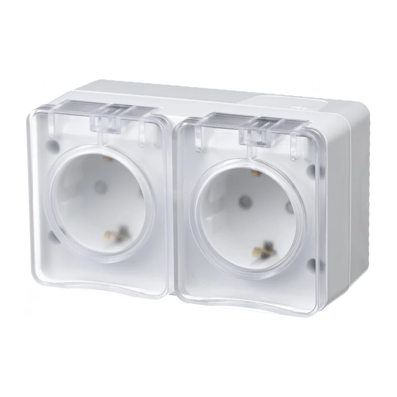 Розетка о/у Atlasdesign Profi ATN540126, 2 гнезда, горизонтальная, с/з, з/ш и крышкой, IP54, белая