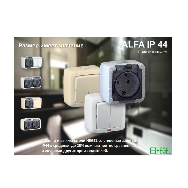 Розетка о/у Alfa РА16-251, 2 гнезда, с/з и крышкой, IP44, белая