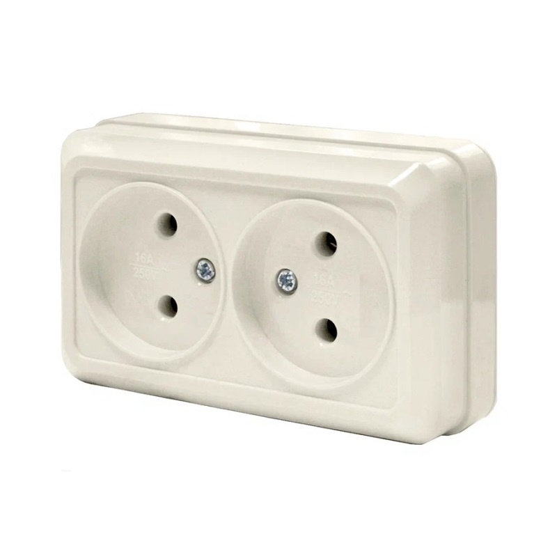 Розетка двухместная без заземления открытой установки серии Олимп предназначена для установки в помещениях с открытой проводкой (ремонт, складские и подсобные помещения, временные коммуникации, нежилые помещения. Подходит для быстрой замены и монтажа в бытовых и коммерческих сетях переменного тока.