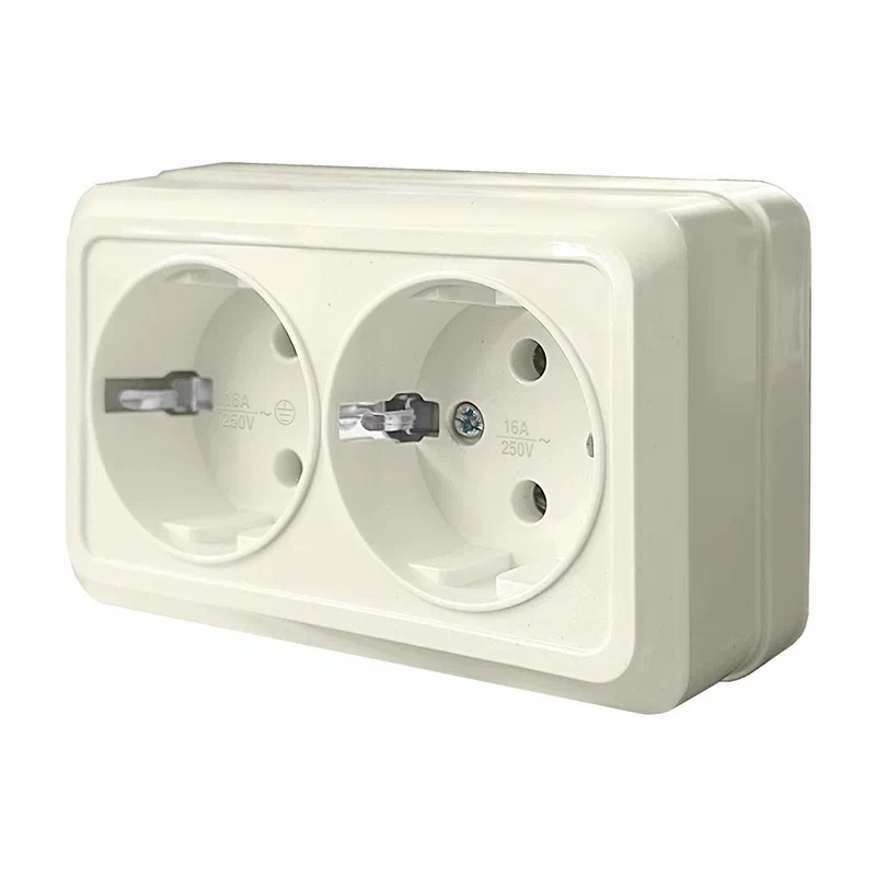 Розетка двухместная с заземлением открытой установки серии Олимп предназначена для установки в помещениях с открытой проводкой (ремонт, складские и подсобные помещения, временные коммуникации, нежилые помещения. Подходит для быстрой замены и монтажа в бытовых и коммерческих сетях переменного тока.