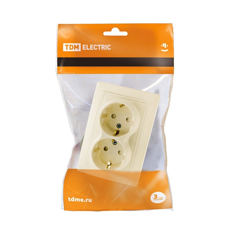 Розетка с/у Таймыр SQ1814-0118, 2 гнезда, с/з, з/ш слоновая кость