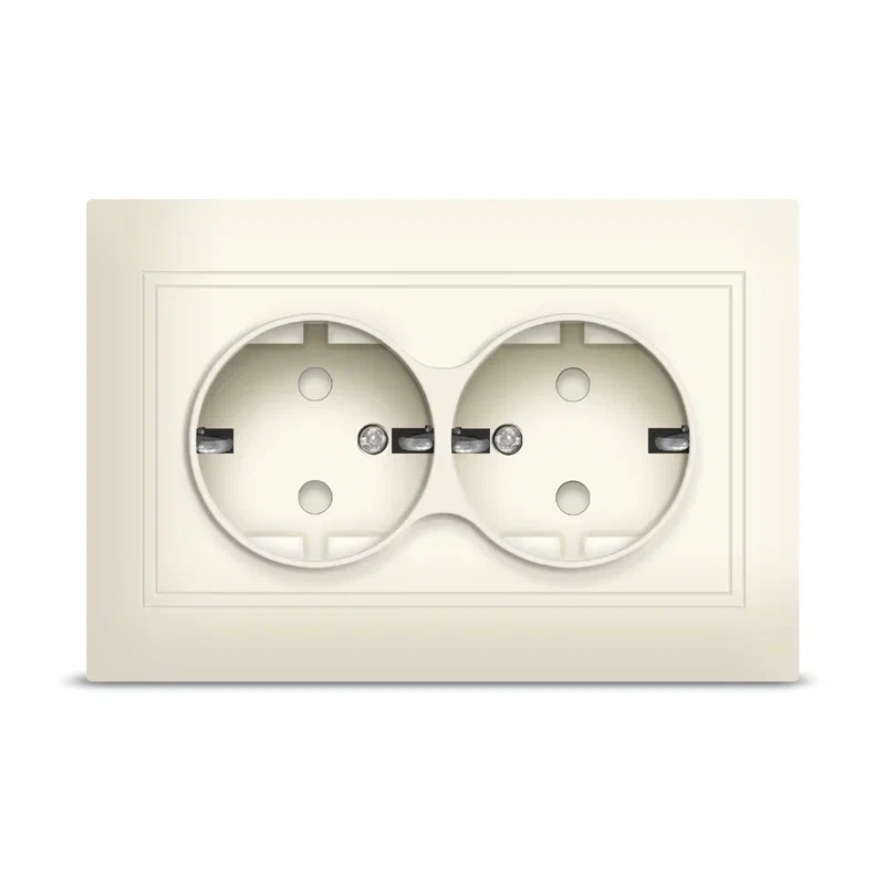 Розетка двухместная с заземлением с защитными шторками скрытой установки серии Севиль предназначена для скрытой проводки в жилых и коммерческих помещениях при условии отсутствия требования заземления. Подходит для установки в стандартные монтажные коробки при ремонте, замене точек питания и при плановой комплектации интерьера.
