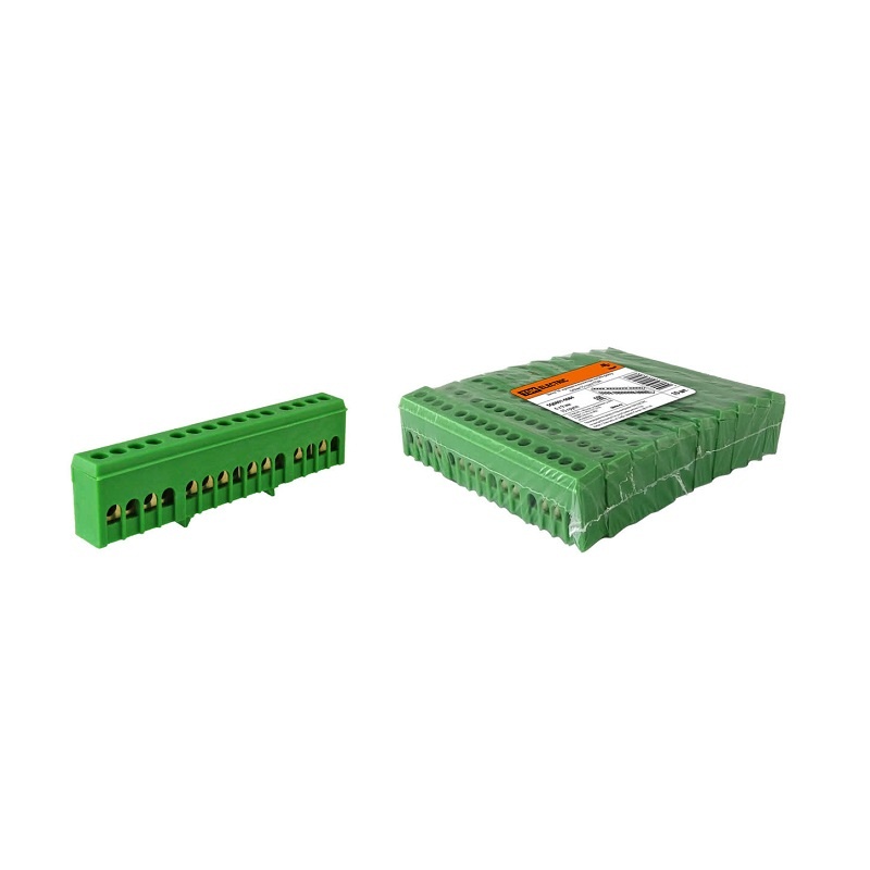 Шина "N" нулевая в изол. оболочке на DIN-рейку 100А, 6х9мм (15 отв.)