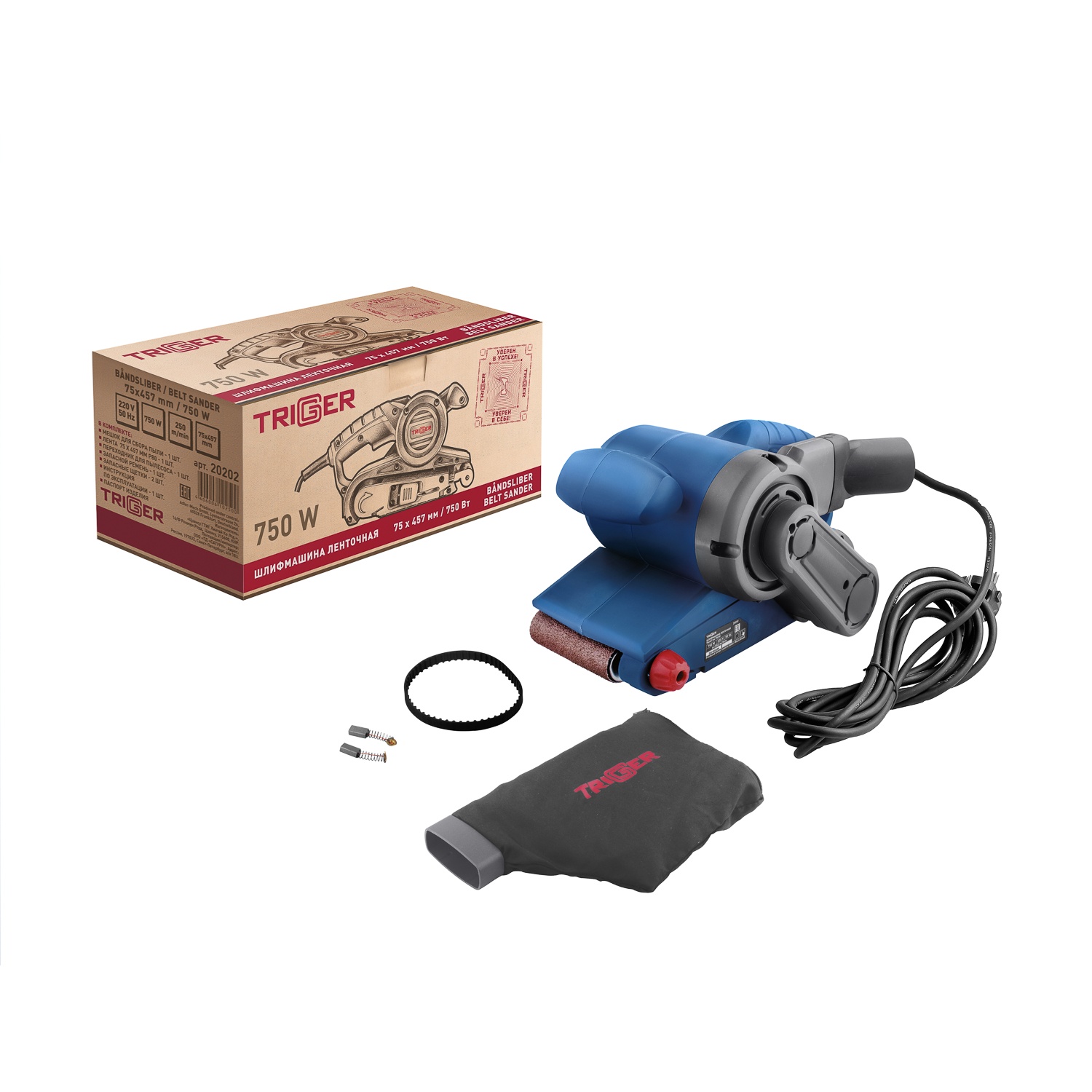 Шлифмашина ленточная сетевая Trigger 20202, 0,75 кВт, 75х457 мм, L кабеля=3 м