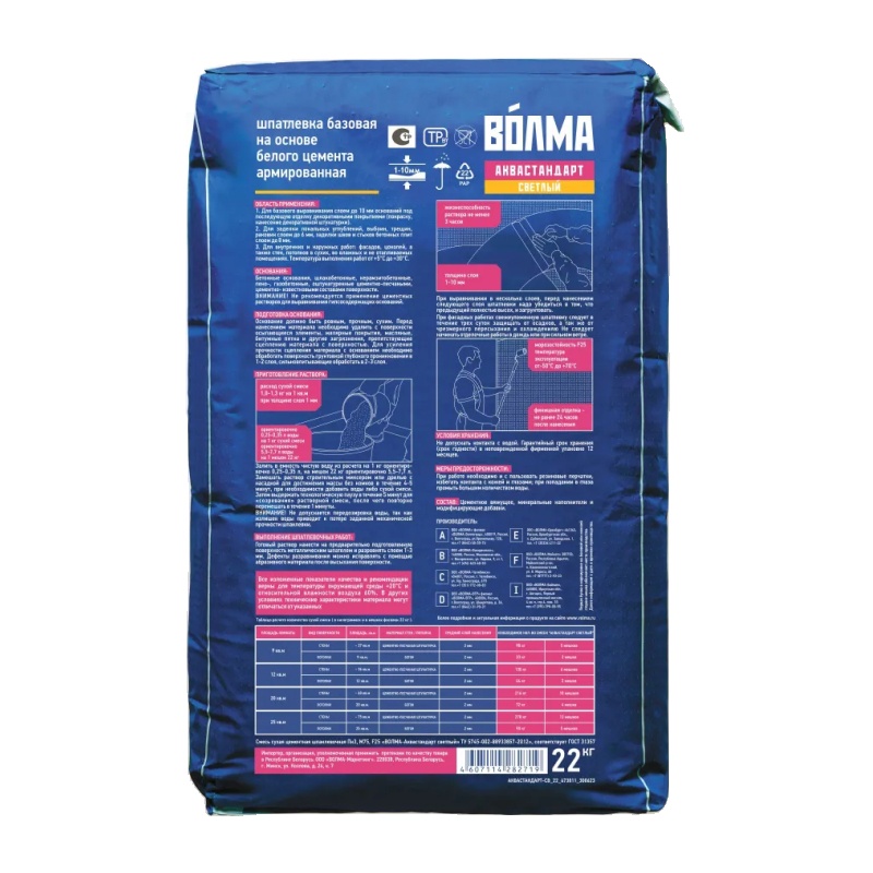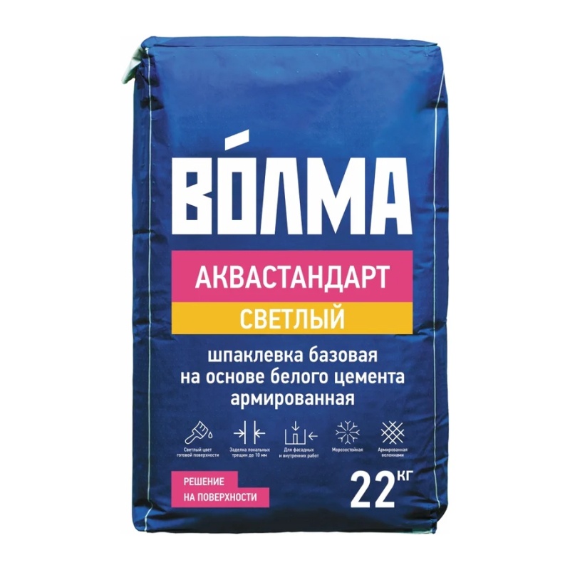 Шпаклевка базовая Волма Аквастандарт на основе белого цемента, 22 кг