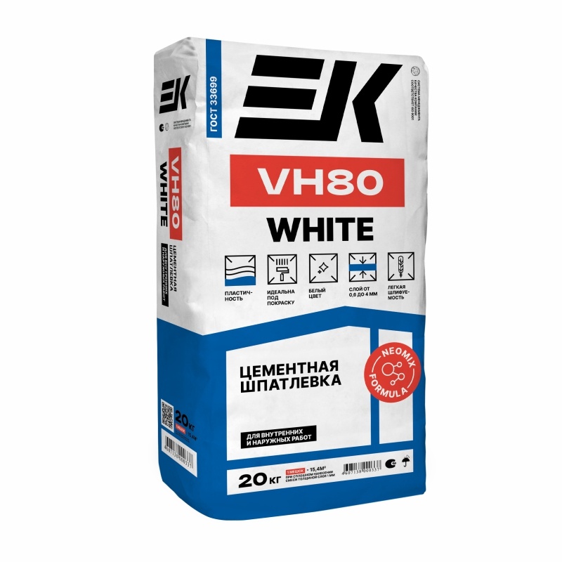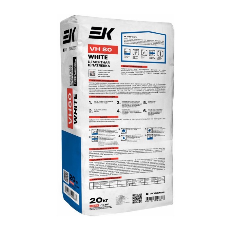 Шпаклевка фасадная ЕК VH-80 супербелая, 20 кг