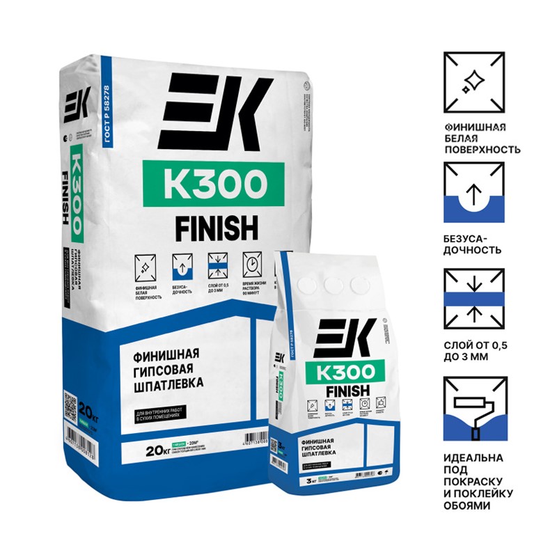 Шпаклевка гипсовая финишная ЕК К-300 Finish, 20 кг