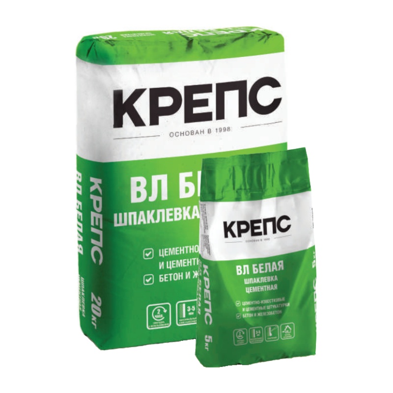 Шпаклевка Крепс ВЛ водостойкая белая, 5 кг