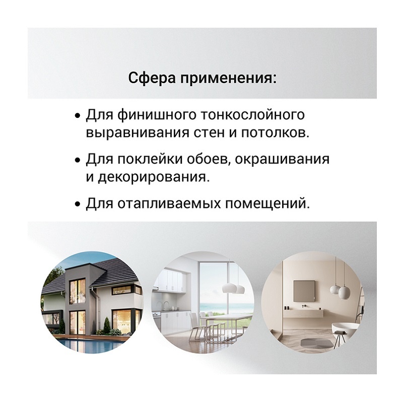 - Толщина слоя от 0,3 до 6 мм: позволяет эффективно справляться с различными неровностями, обеспечивая идеальную поверхность для отделки.