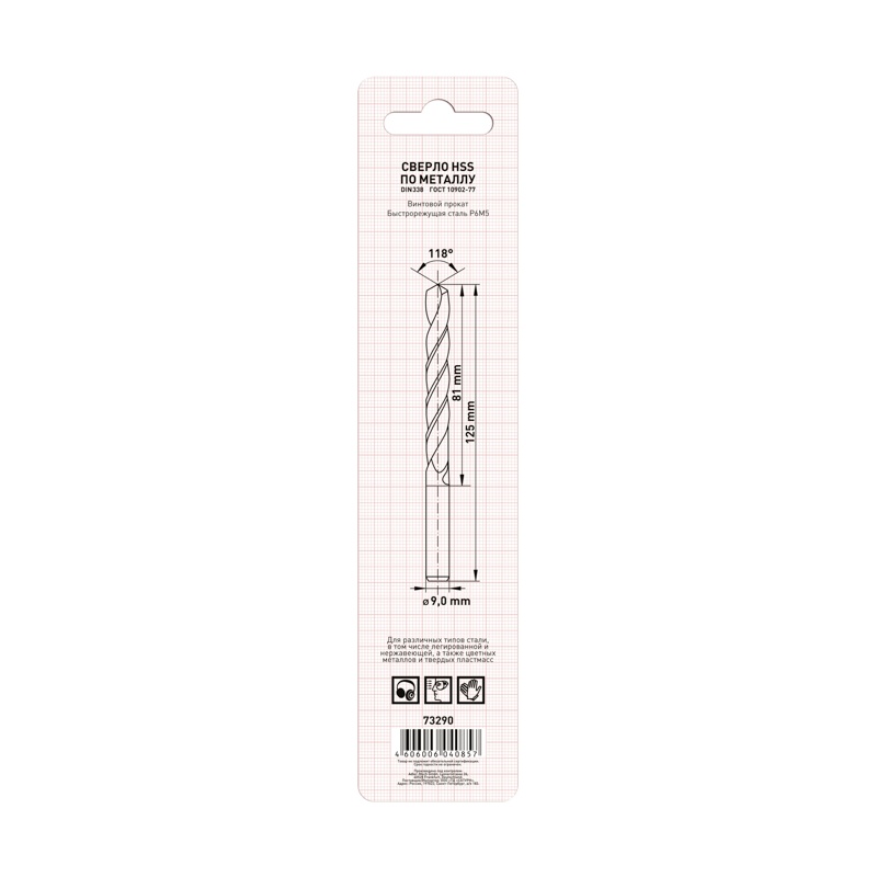 Сверло по металлу Trigger 73290 Р6М5 9,0 мм