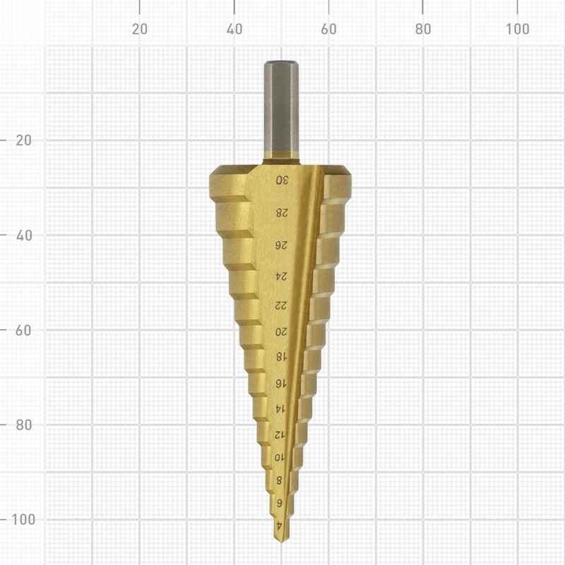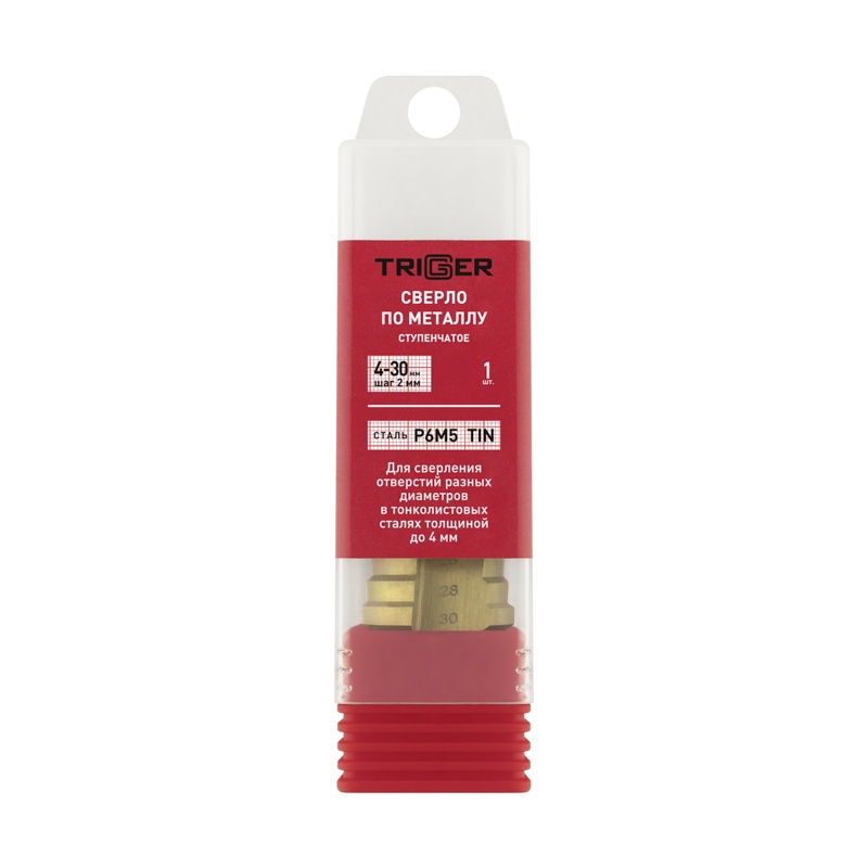 Сверло ступенчатое по металлу Trigger 74346 Р6М5 TIN d 4-30 мм