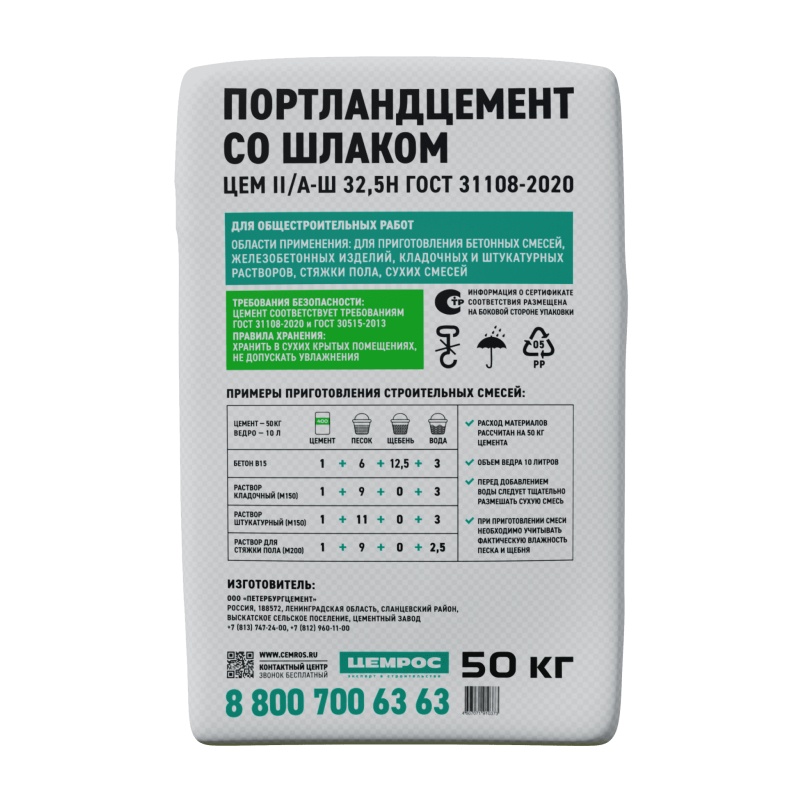 Цемент Цемрос ЦЕМ II/А-Ш 32,5Н, М-400, Д20 (50 кг)